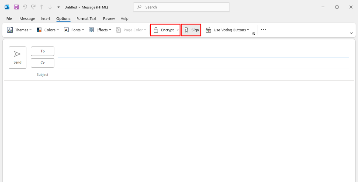 To use the email signing/encryption functionality, you must use Outlook (classic).