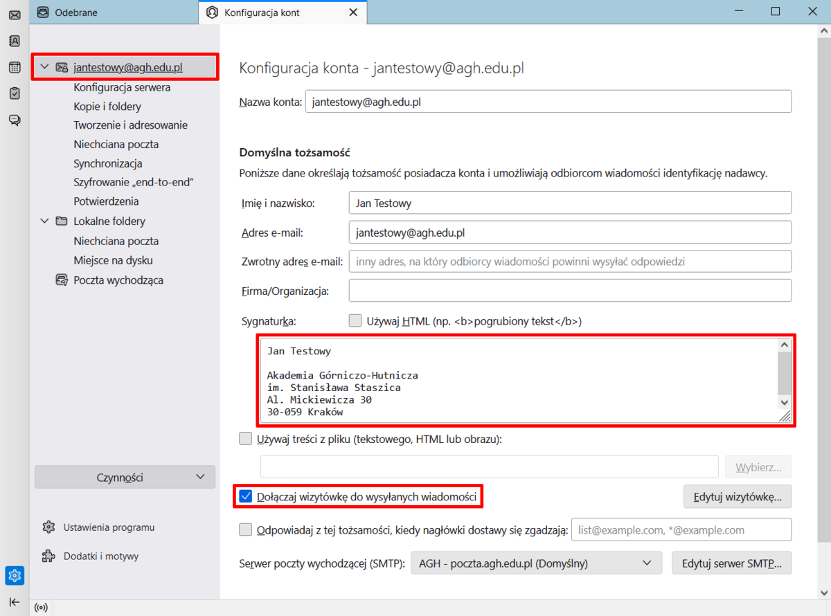 W programie pocztowym Thunderbird można ustawić automatyczną wizytówkę - podpis pod każdą wiadomością.