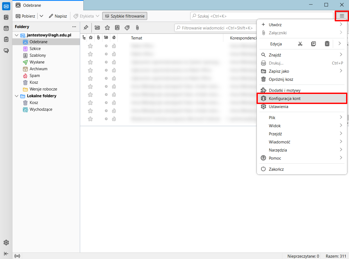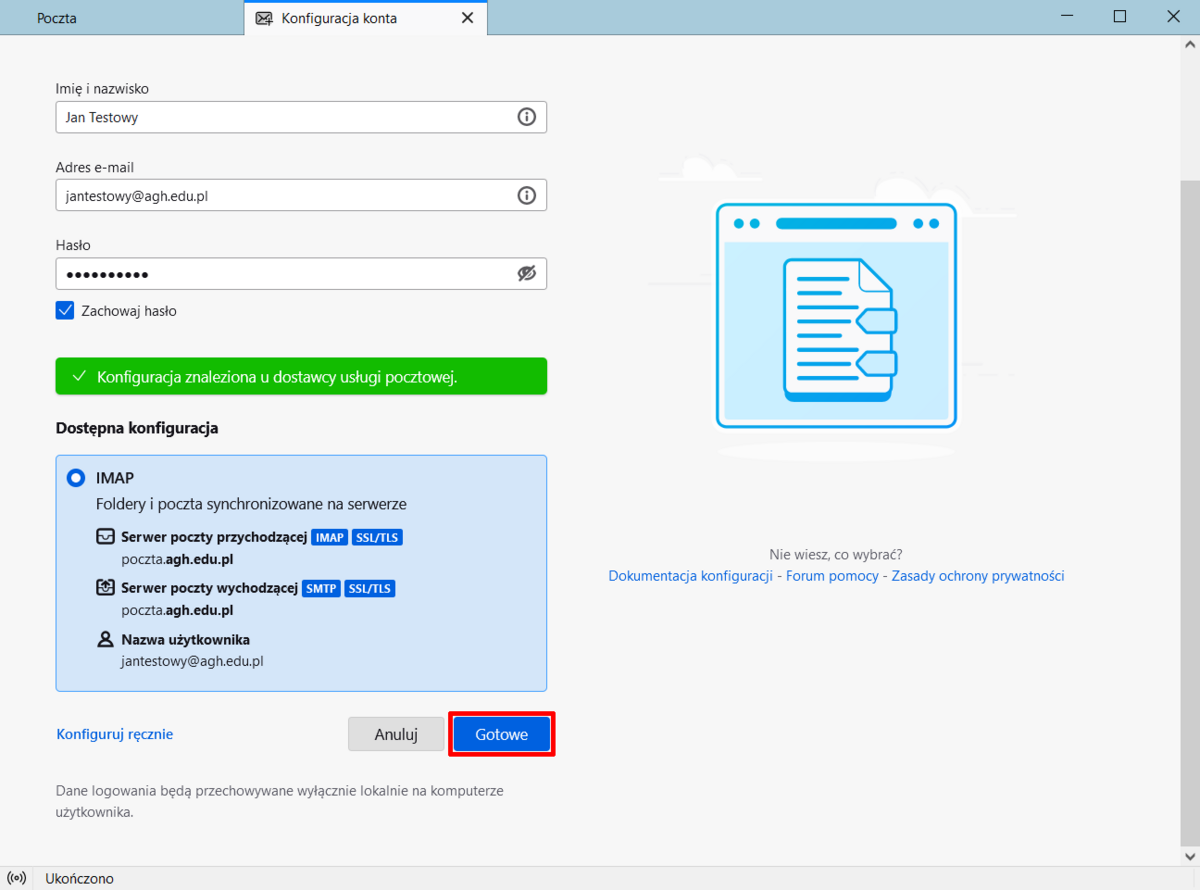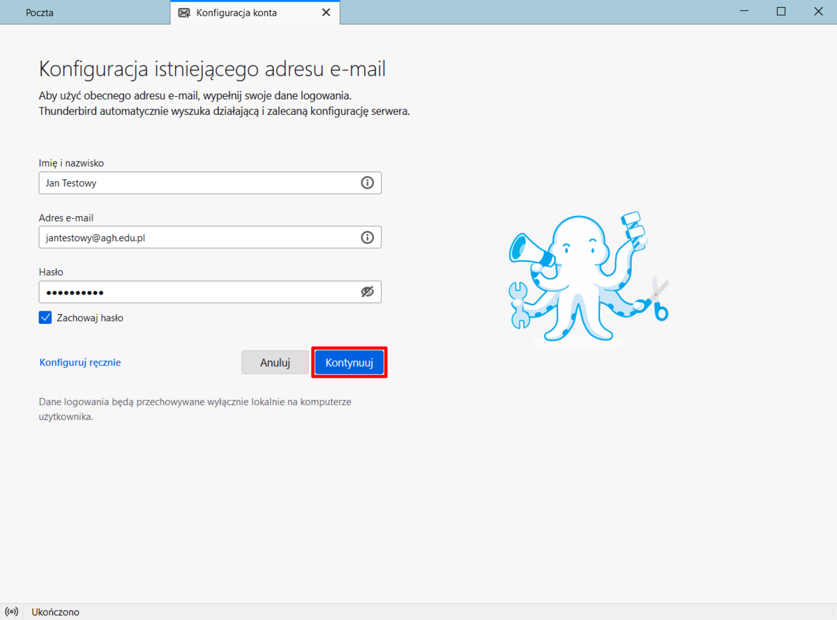 Jako hasło wpisz wygenerowane w Webmailu hasło do aplikacji (szczegóły: Instrukcja).