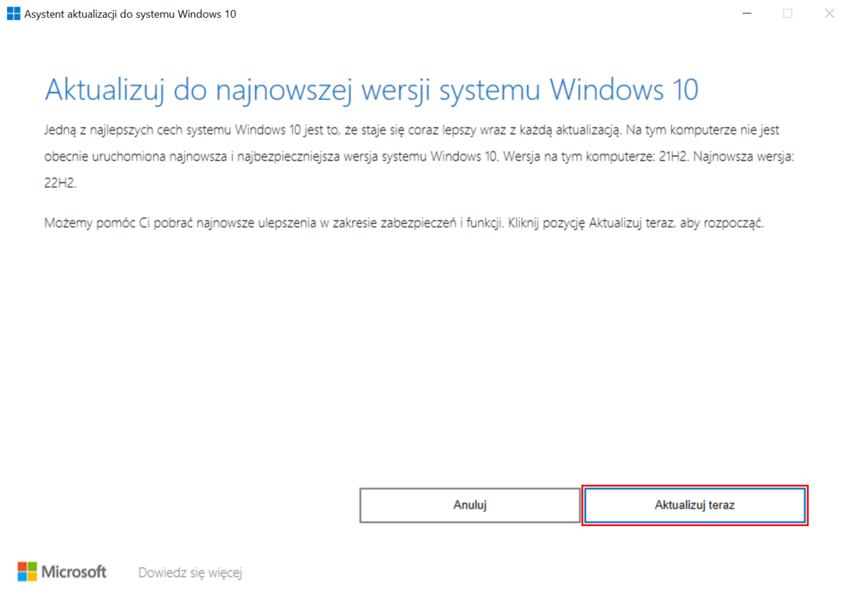 Jeżeli na Twoim komputerze zainstalowany jest system Windows 10, który: