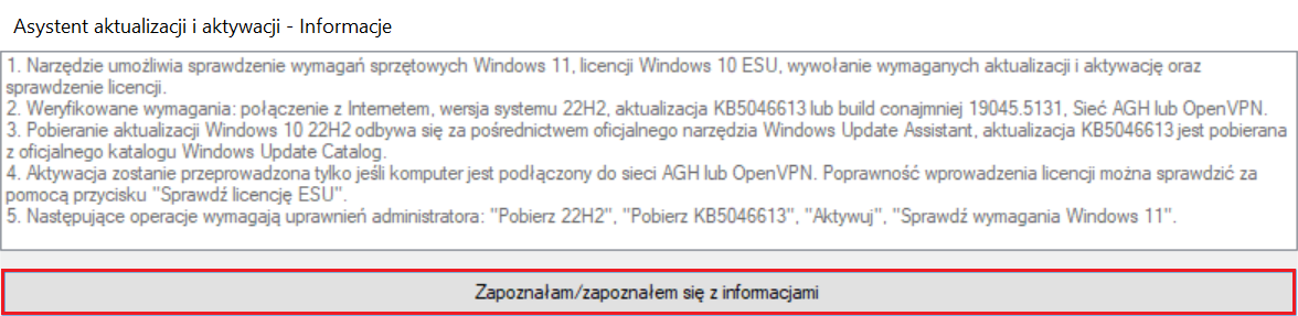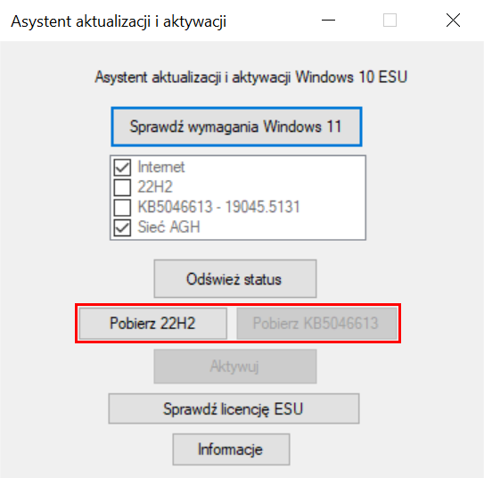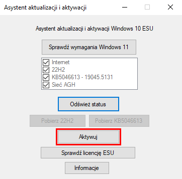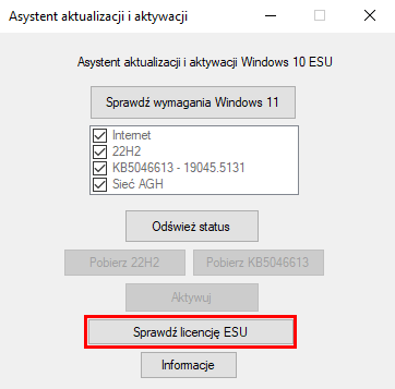 Aktywacji licencji ESU (Extended Security Updates) na komputerach z Windows 10 należy dokonać za pomocą przygotowanego przez Sektor IT narzędzia.