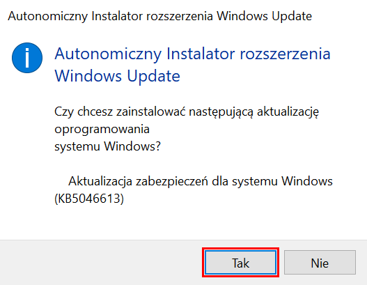 Uwaga! Jeśli pozycje 22H2 lub KB5046613 - 19045.5131 nie są zaznaczone, najpierw wykonaj kroki opisane w sekcji Sprawdzenie i zainstalowanie wymaganych aktualizacji dla Windows 10.