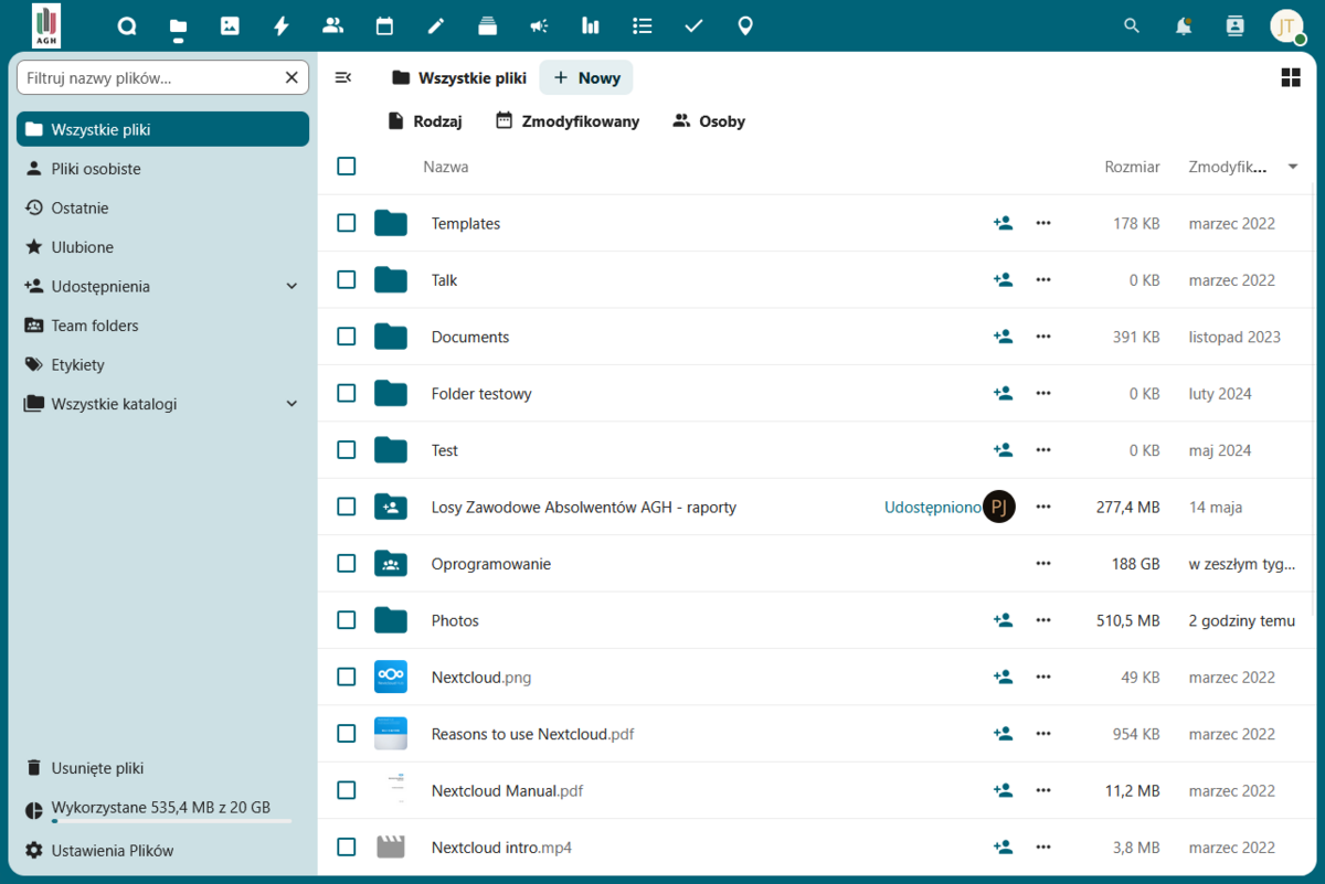 Dostęp do usługi Chmura AGH jest autoryzowany za pośrednictwem SSO AGH.