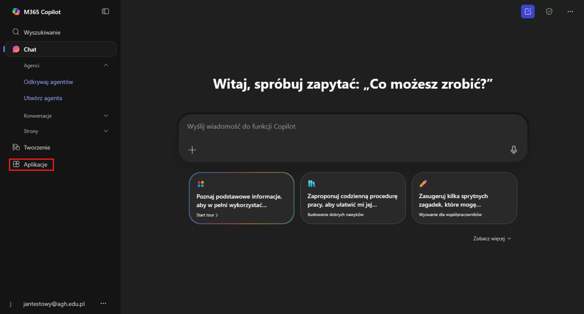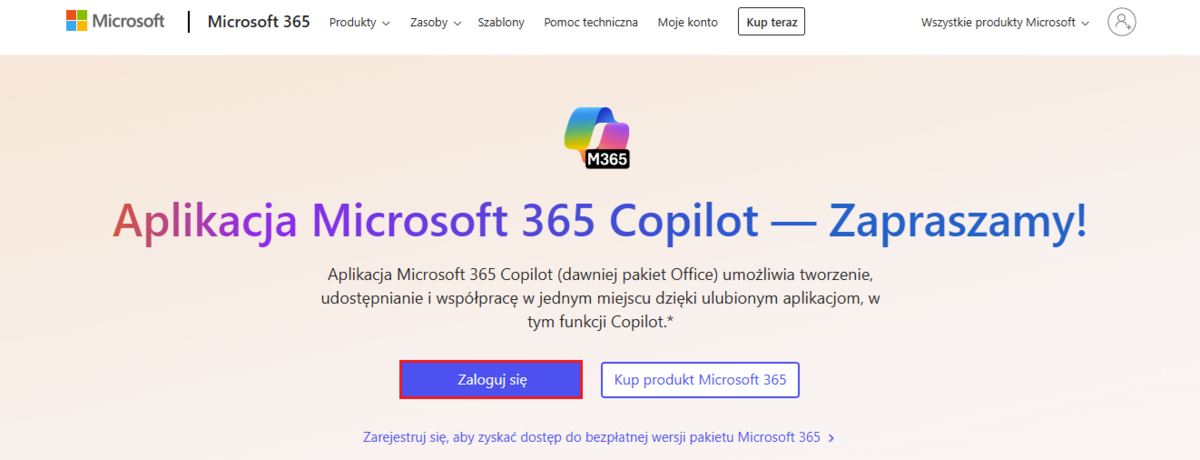 W celu zalogowania się do usługi Microsoft 365 Copilot wykonaj następujące kroki: